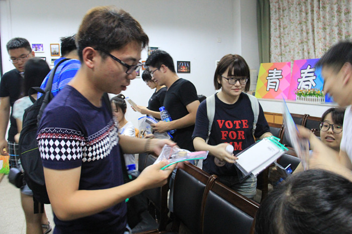 在交流会临近尾声之际,学院的领导老师们亲自为考研学子们发放文具、饮品等慰问品。此次暑期考研慰问交流会不仅仅是为给考研学子们鼓劲加油,更是为了深入了解现阶段考研学子们面临的疑惑和需求,以期给学生们提供更为人性化专业化的指导。该项活动也是学院深入践行“两学一做”学习教育的系列举措之一,从院领导班子分工联系班级、联系专业,到每位院领导老师联系指导一位考研学生,再到系列考研慰问指导会,学院将“以生为本”的理念贯彻落实到每一项具体工作中,为全体考研学子送温暖、增信心、强底气。(文/郁悦、徐丁 图/王康)
