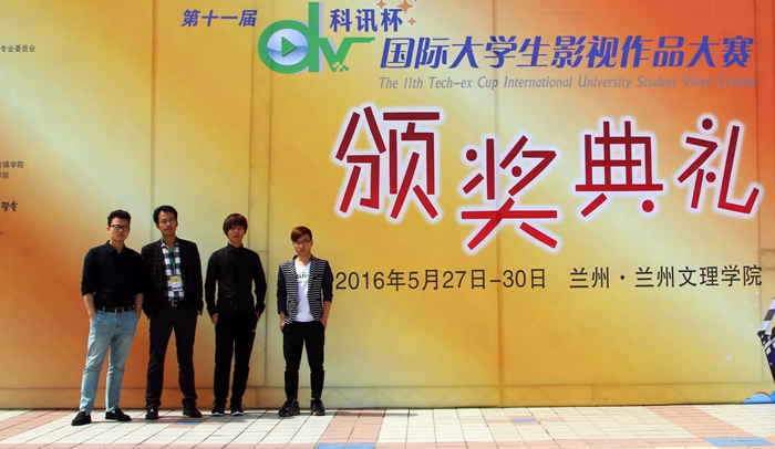 5月28日下午,第十一届“科讯杯”国际大学生影视作品大赛颁奖典礼在兰州文理学院隆重举行,动画系教师吴浚、吴杰的,动画专业2013级吴天赐、袁斯卡参加颁奖典礼,由吴浚指导,吴天赐、袁斯卡等同学创作的沙动画作品《栖》获华东赛区一等奖,并获总决赛优秀影片奖,最佳动画片、最佳音效2项提名奖。