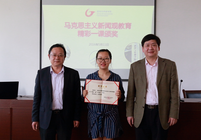 教学副院长马梅通报了开学以来教学常态化检查的基本情况,宣布了在马克思主义新闻观教育“精彩一课”活动中获奖的青年教师,院党委书记胡靖和执行院长杨柏岭为每位获奖教师颁奖。之后,马梅详细解读了最新制定的2016版人才培养方案。
