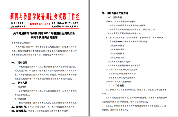 暑期社会实践引导学生走出校门、接触社会、寻访基层、了解民生,将理论与实践有效结合,培养与锻炼了同学们的技能才干,促进广大学生提高思想觉悟,增强服务意识,是学院长期以来高度重视的第三课堂重要教学内容。举办系列培训活动,旨在帮助实践队员了解暑期实践活动内容及方法,通过交流互动,学习升华,端正暑期实践组织负责人员的工作态度,提升其工作能力,培养出一批批优秀杰出的暑期社会实践组织者。