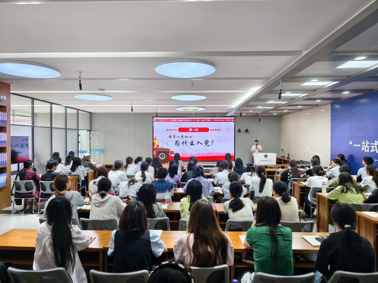 阿卜来提·阿卜力克木以两个问题切入。一是“探寻入党初心:为什么入党?”他邀请组织委员李欣然同学表达自己的入党动机,肯定了李欣然同学的奉献精神后,转到自身经历——从最初的“盲目要强”到“主动报恩”。阿卜学长讲述自己申请入党的过程中受到了中国共产党许多政策的帮扶,在有能力后,他希望自己能以自己的力量回报党和国家。阿卜学长表示,在提交入党申请书前迷茫是正常的,但作为一名入党积极分子,我们应该对中国共产党有正确的认识与信仰,找到党与我们之间的联系,从而更好地为中国共产党的事业添砖加瓦。此间,阿卜学长推荐入党积极分子阅读《习近平的七年知青岁月》与《中国共产党的九十年》两本著作。“我们阅读理论知识,慢慢接触后就会理解并且喜欢中国共产党本身的内涵”,阿卜学长如是说。二是“明确行动方向:入党以后怎么发挥作用?”同样,阿卜学长邀请了肖融同学起身回答。他对肖融同学“将党员先锋模范作用与自身专业结合具体实践”的回答予以高度肯定。阿卜学长通过展示自己的丰富经历,分别向入党积极分子介绍了在学校学习和社会工作中应该如何发挥党员骨干引领作用,从志愿服务到国防主题教育,从校方阵队教官到征兵入伍宣传,从普通话考试到演讲比赛,阿卜学长用行动经历告诉我们,凡事都应该去多多尝试,勇敢尝试。身为入党积极分子更应该无惧任何艰难险阻,做时代浪潮最高处的弄潮儿,引领人民奔向更好的时代。