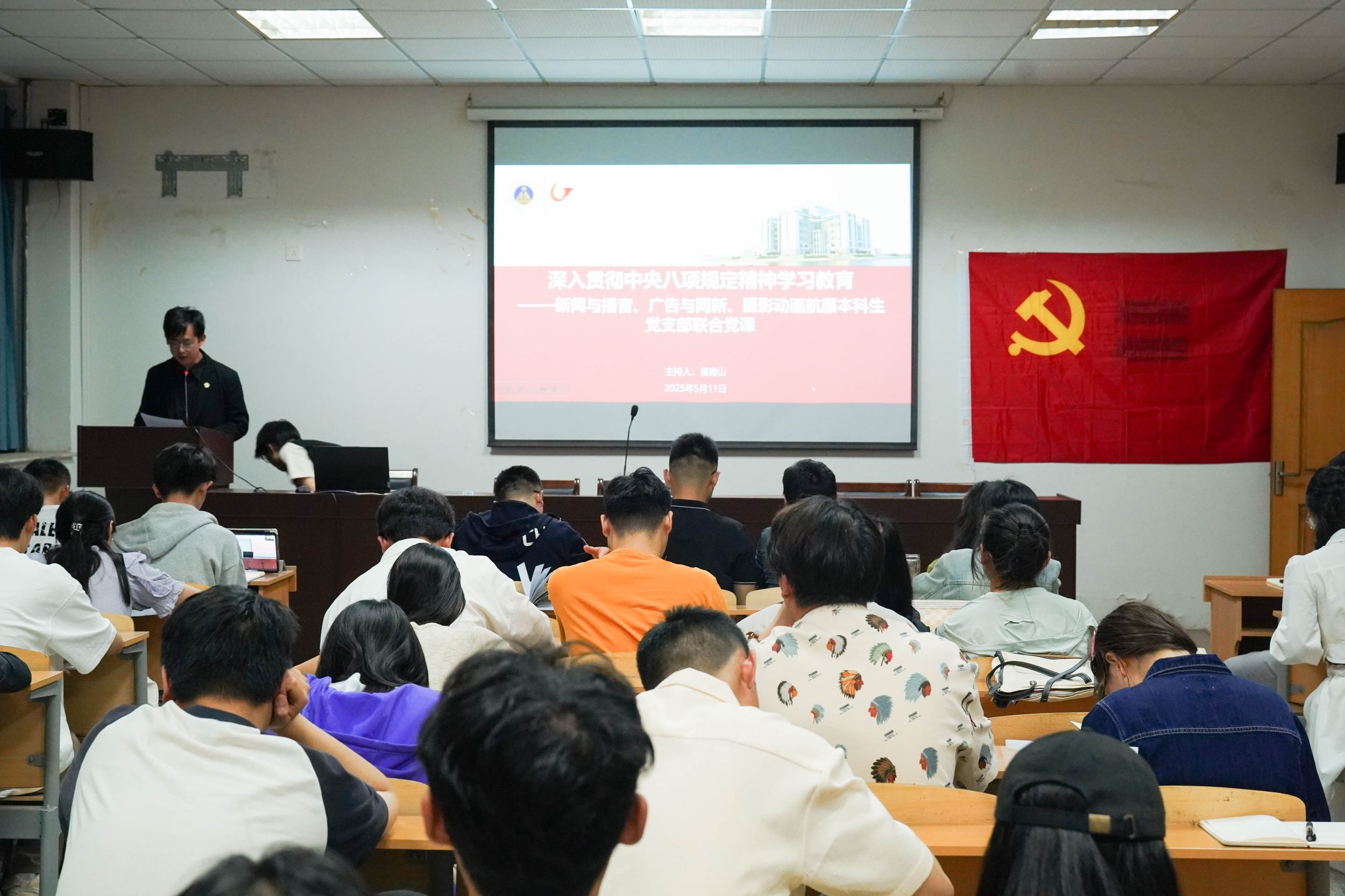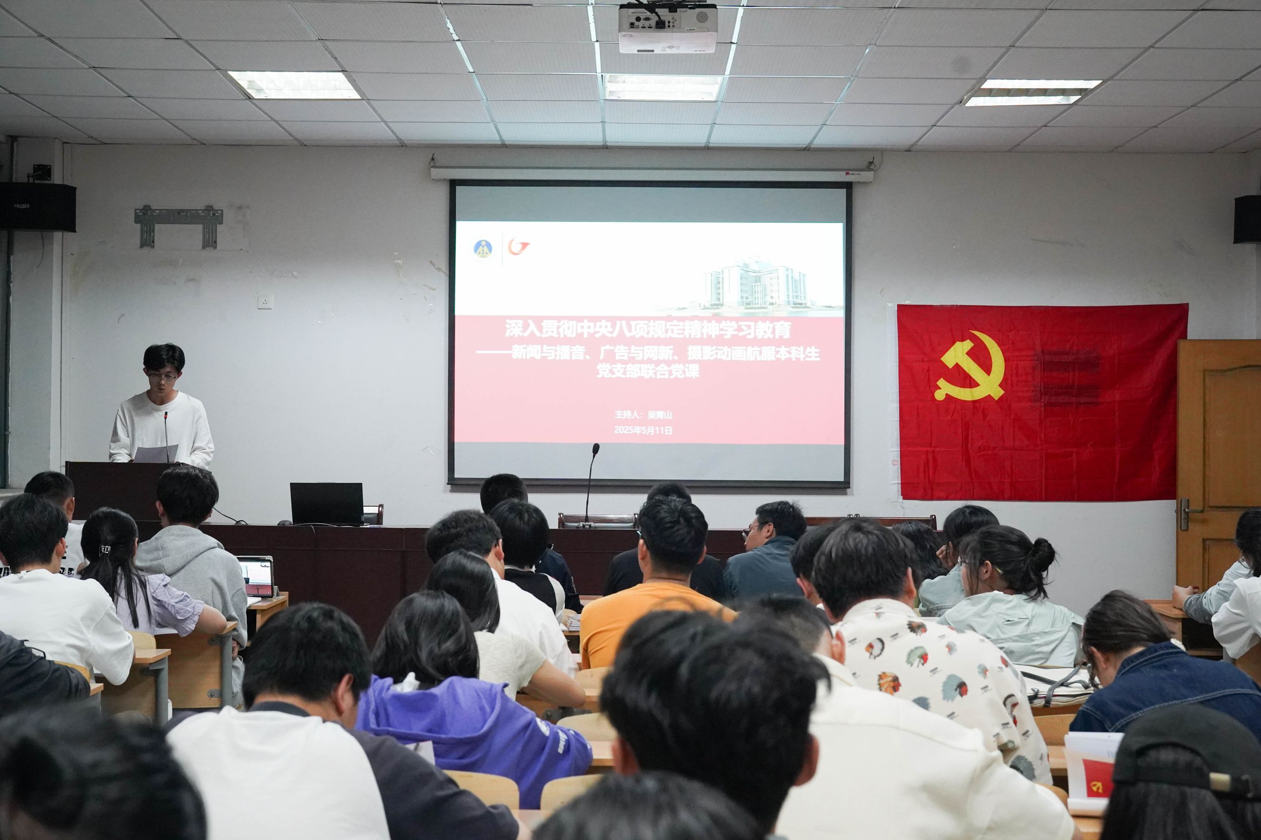 5月11日晚,新闻与播音主持、广告与网新、摄影动画与航服本科生党支部在学院楼405会议室开展以“深入贯彻中央八项规定精神学习教育”为主题的联合党课。党课由德赢AC米兰合作伙伴党委副书记、纪委书记吴青山主持,各支部全体党员参会。