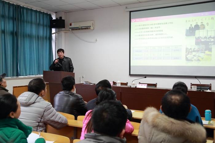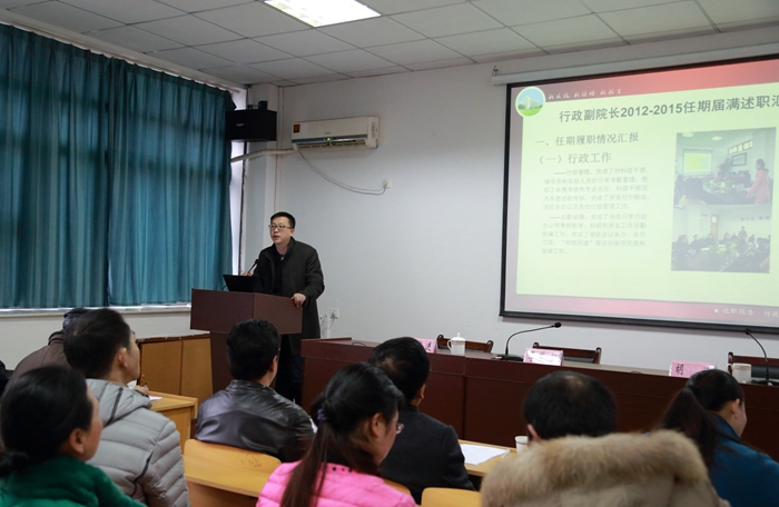 12月24日下午,我院召开党政领导班子和领导人员任期届满述职考核(民主推荐)大会。校第一考核组组长、校党委组织部部长季爱新、校党委宣传部副部长徐成进、校纪委办公室秘书王俊恒一行三人出席本次会议。学院全体教职工参加大会。会议由院党委书记胡靖主持。