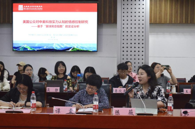 华中科技大学新闻与信息传播学院教授陈薇的发言题目是《中美科技实力认知的情感控制研究——基于“寰球民意指数”的实证分析》,她的研究基于中美贸易摩擦的研究背景,提出了美国公众对中国科技实力与科技形象的认知如何、怎样看待中美科技实力的较量、主导认知的具体因素有哪些三点研究问题。陈薇提到,当前中美科技实力比较认知的情感控制因素可以总结为EPA要素,即评价、效能、活跃度,她的研究结果显示,美国公众对中美科技竞争态势研判受社会内部情感影响,积极与消极并存,同时信息接触活跃度对美国公众关于中美两国科技实力认知影响方式复杂。