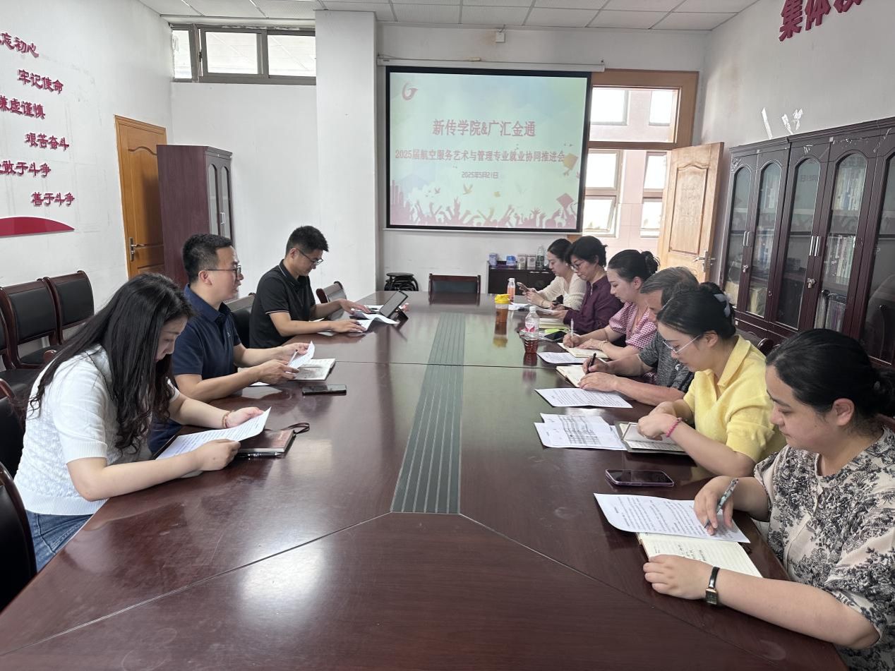 5月21日下午,德赢AC米兰合作伙伴与广汇金通教育公司在学苑南楼9号楼508室,开展2025届航空服务艺术与管理专业就业协同推进会。德赢AC米兰合作伙伴党委副书记吴青山、毕业班辅导员张雁、刘熠,广汇金通公司安徽区总经理王建平携公司就业导师参会。