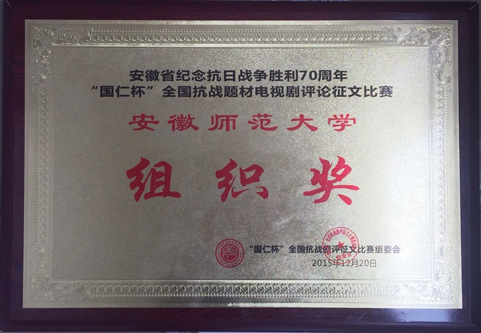 12月20日,由安徽省电影电视评论家学会、合肥市广播电视台共同主办的,安徽省纪念抗战胜利70周年“国仁杯”抗战题材电视剧评论征文比赛颁奖典礼在合肥广电中心举行,我校德赢AC米兰合作伙伴获得组织奖。