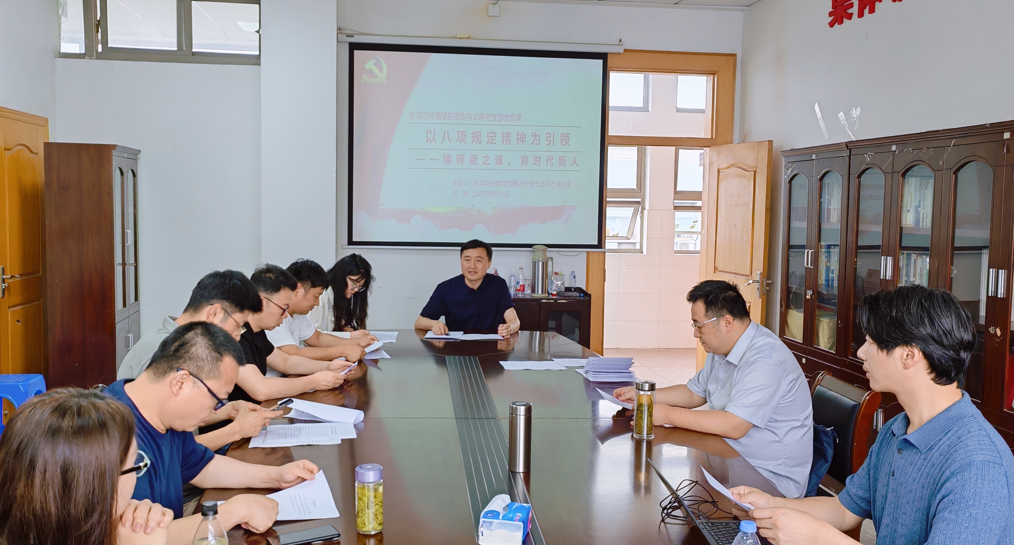 本网讯(摄影与动画党支部)6月11日下午,摄影与动画党支部开展作风建设专题党课,本次党课由德赢AC米兰合作伙伴党委委员、副院长赵昊、党支部书记李化来分别作《八项规定改变中国》《以八项规定精神为引领,铸师德之魂,育时代新人》主题授课,通过宏观历史视野与微观专业实践的双重讲解,为艺术传播人才培养注入新时代清廉基因,支部全体党员参加了党课学习。