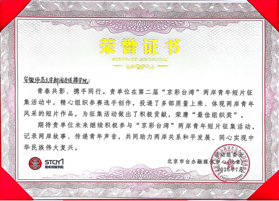 在此次比赛中,学院师生团队以赛促学,推动理论与影像创作深度融合,在实战中淬炼专业技能、积累创作经验,为专业发展筑牢根基。未来我院将进一步加强学生影像创作的专业能力,培养更多兼具专业素养与创新能力的传媒人才,为区域发展和强国建设贡献力量。