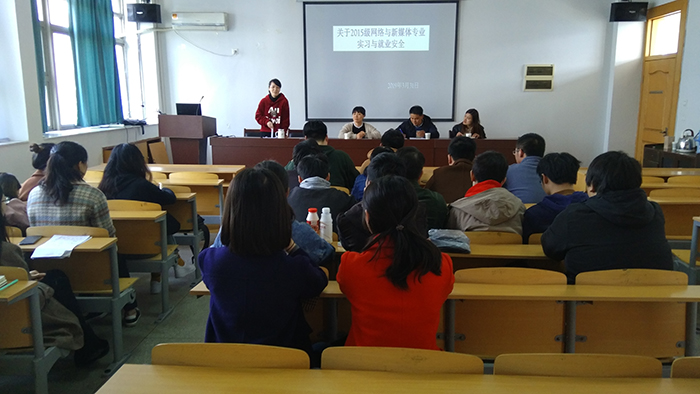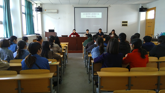 3月31日下午两点,2015级网络与新媒体专业在学院四楼会议室召开毕业论文推进会暨实习总结会,网络与新媒体专业负责人林燕主持会议,网络与新媒体专业教师和2015级网络与新媒体专业学生参加会议。