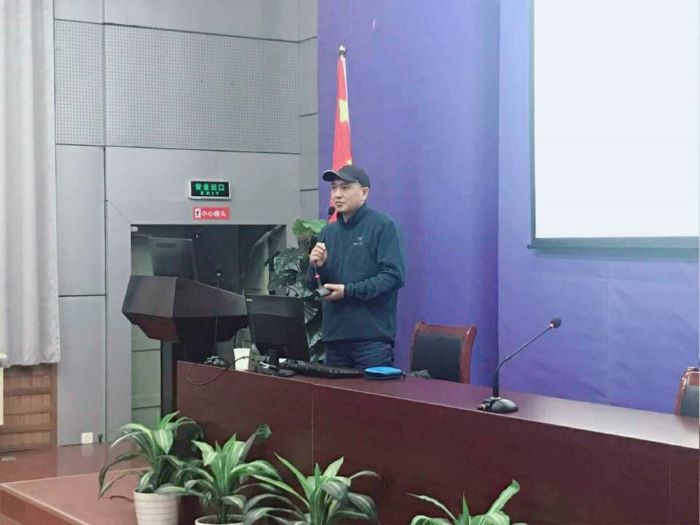 讲座伊始,于继勇先生带领师生观看了《紫蓬山》的精彩片段,之后,他开始讲解,他首先讲述了选题的重要性。他说整个团队实地调研了紫蓬山,在深入挖掘紫蓬山区的历史后,决定从小处着眼,微观出发,以现实和历史人物故事为主要脉络,构建属于紫蓬山的视觉意象。于继勇强调,纪录片的选题要具有时效性与唯一性,制作者需要考虑选题是否具有地域特色,是否为全球或全国第一,是不是具有文献价值,旧题材是不是有新视角,一个好的选题意味着成功了一半。