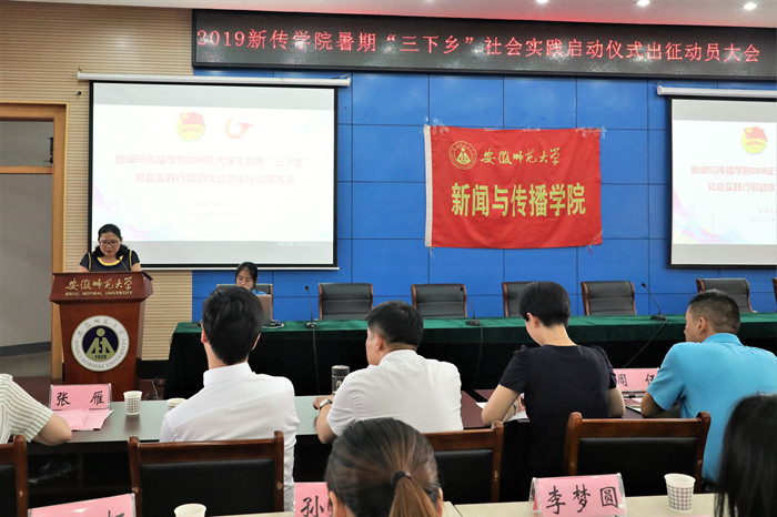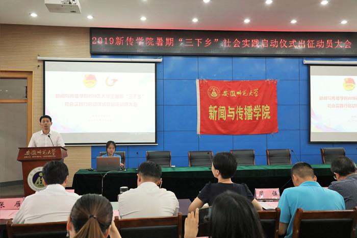 为响应团中央、学校关于暑期“三下乡”社会实践活动的号召,引导我院学予以实际行动深入学习贯彻习近平新时代中国特色社会主义思想,7月3日下午,德赢AC米兰合作伙伴2019年暑期“三下乡”社会实践启动仪式暨出征动员大会在花津校区会议中心举行。校团委副书记刘长生,学院社会实践思政指导教师、马克思主义学院教授、博士生导师汪盛玉,院党委书记张师帅,执行院长杨柏岭,院党委副书记宋静,副院长周伍、马梅,院教授委员会主任丁云亮,各专业主任及全体专兼职辅导员与社会实践团队的成员代表共同参加了启动仪式。仪式由院团委书记张雁主持。
