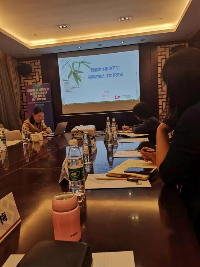 马梅老师在“智能媒体与新闻传播学科变革”学术年会的“智能媒体新闻传播的人才培养”分论坛上,对我院在新闻传播人才培养方面的探索做了详尽介绍。她说,智能媒体使得新闻传播业所依赖的物质基础和人力资源发生了变化,更加依赖信息技术、数字处理、数字媒体艺术及相关人才,从而需要高校新闻传播教育在学科理念上要发生变化,要在人文社会科学之外注重数字处理、信息技术等理工科、艺术类范式和理念的引入,需要引进相关学科师资,或采取和理工科专业的合作培养模式,或在学程上采取更加灵活的教学时间安排,采取更加开放的教育教学方式,通过小学期和工作坊工作室等形式;同时智能技术使得一般性新闻传播作品的采制门槛降低,新闻传播竞争集中到集思想深度和情感深度、美学深度为一体的作品的生产方面,集中到创意创新的深度方面,这就需要新闻传播教育的人文基础部分的进一步夯实,需要打破单一课堂教学的壁垒而采取读书会、联合作业等自主合作探究性的更注重主动性发挥的教育教学方式。其观点得到各位专家学者、新闻传播教育界同仁的认同,引起了广泛兴趣。