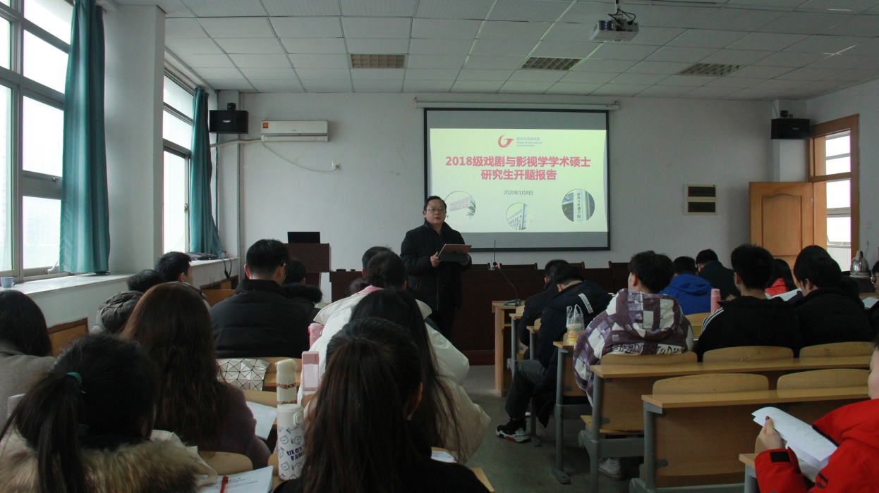 1月8日,德赢AC米兰合作伙伴于学院四楼会议室举行2018级戏剧与影视学专业研究生毕业论文开题报告会,报告会由执行院长、戏剧与影视学学位点负责人杨柏岭教授主持,科研与研究生副院长赵昊教授、学位点全体硕士生导师参与评审,2018级、2019级戏剧与影视学研究生参加了此次开题报告会。