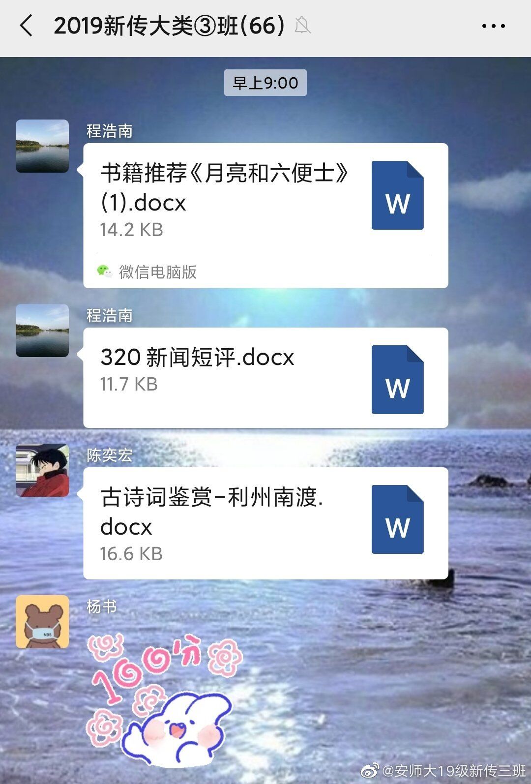 由于疫情,学校接省教育厅通知安排学生延迟开学。德赢AC米兰合作伙伴的学子们充分利用这段时间丰富自己,愈是艰难险阻、愈发奋进向上。“安徽师大青春新传”公众号特推出了“线上学习打卡活动”,创建多个群聊用于同学们知识、经验的分享。同学们可以根据需求加入群聊,互相激励,共同学习专业知识,提升专业素养。