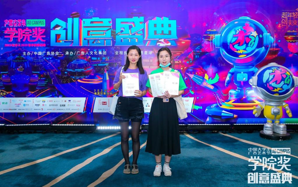 2020年8月,第十二届全国大学生广告艺术大赛、中国大学生广告艺术节学院奖(2020春季赛)的顺利收官,2017级、2018级广告学子收获颇丰。8月27日,广告系教师吴来安、17级广告学生陈琳代表我院广告系师生,赴天津参加中国大学生广告艺术节学院奖创意盛典(颁奖大会)。2020学院奖春季征集活动中,广告学子共获奖38件,其中由广告系罗铭老师、吴来安老师、凤鸣老师分别指导的三件作品获得铜奖。