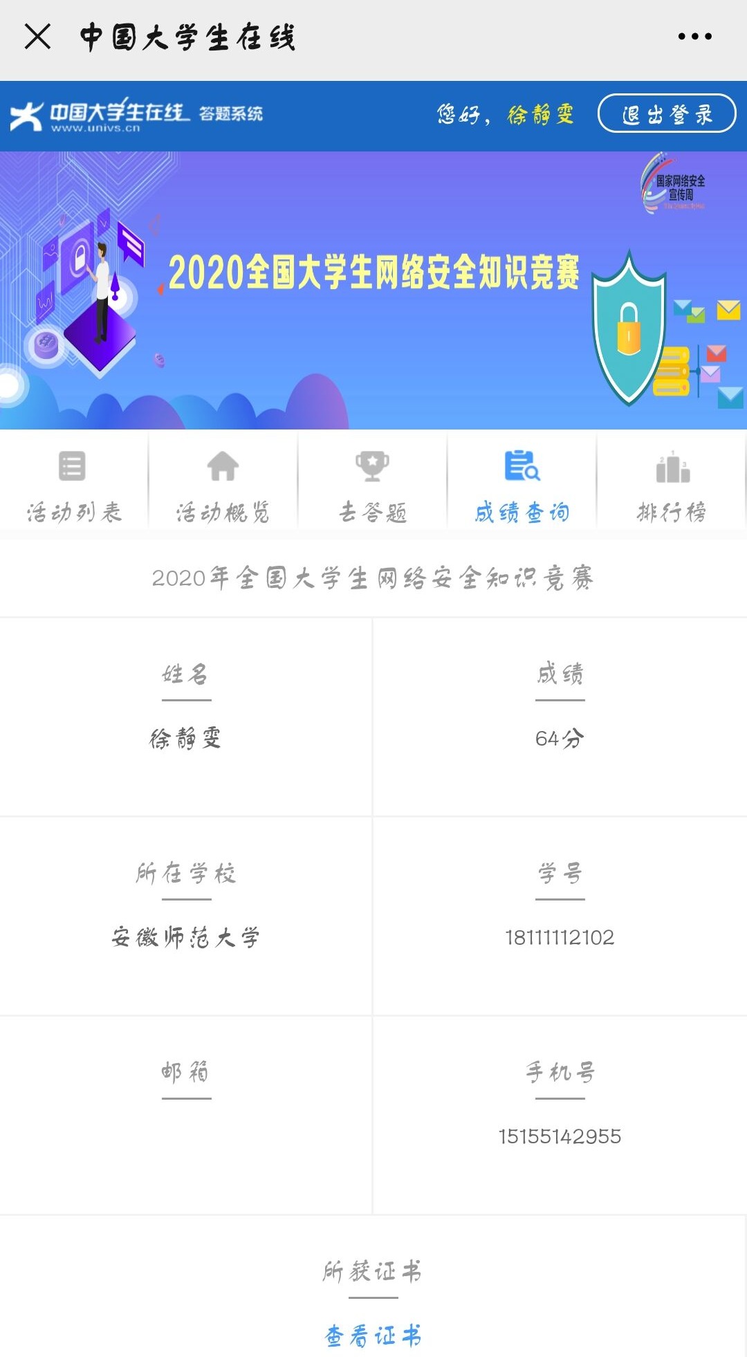 亲身实践,收获感悟与思考新传学子也积极利用自己的所学技能参与到网络安全周活动中来,通过网络在线答题自我普及网络安全知识,激发学习网络安全知识兴趣,提升网络安全防护技能。2018级网新专业积极开展主题班会并组织相关活动,鼓励大家参与参加全国大学生网络安全知识竞赛,增长见识的同时更是筑牢思想防线。