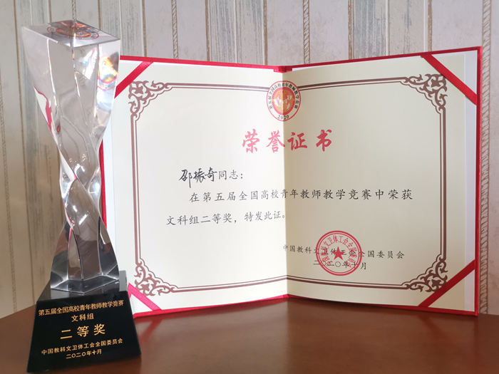 百舸争流展风采,三尺讲台绽芬芳。10月30日,由中国教科文卫体工会全国委员会主办的第五届全国高校青年教师教学竞赛决赛在南京大学落下帷幕。我院邵振奇副教授位列文科组第十名,获得二等奖,这是安徽在这项赛事文科组别的历史最好成绩、最高名次,是安徽在这项赛事的“文科突破”。