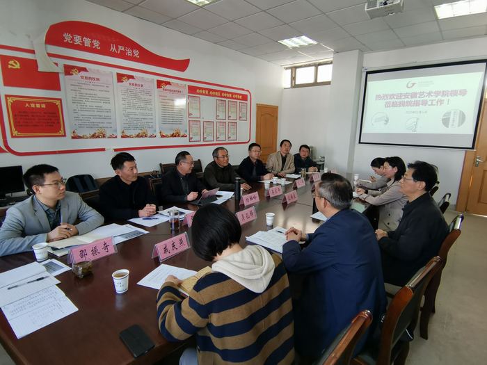 近日,安徽艺术学院校党务主要负责人沈端良,校党委委员、宣传部部长吴孔铎,新闻播音系主任王琍琍一行前来我院调研部校共建新闻学院工作。校党委委员、党委副书记蒋家平,党委宣传部副部长王峰,学院领导班子和新闻学、播音与主持艺术专业负责人出席调研座谈会。