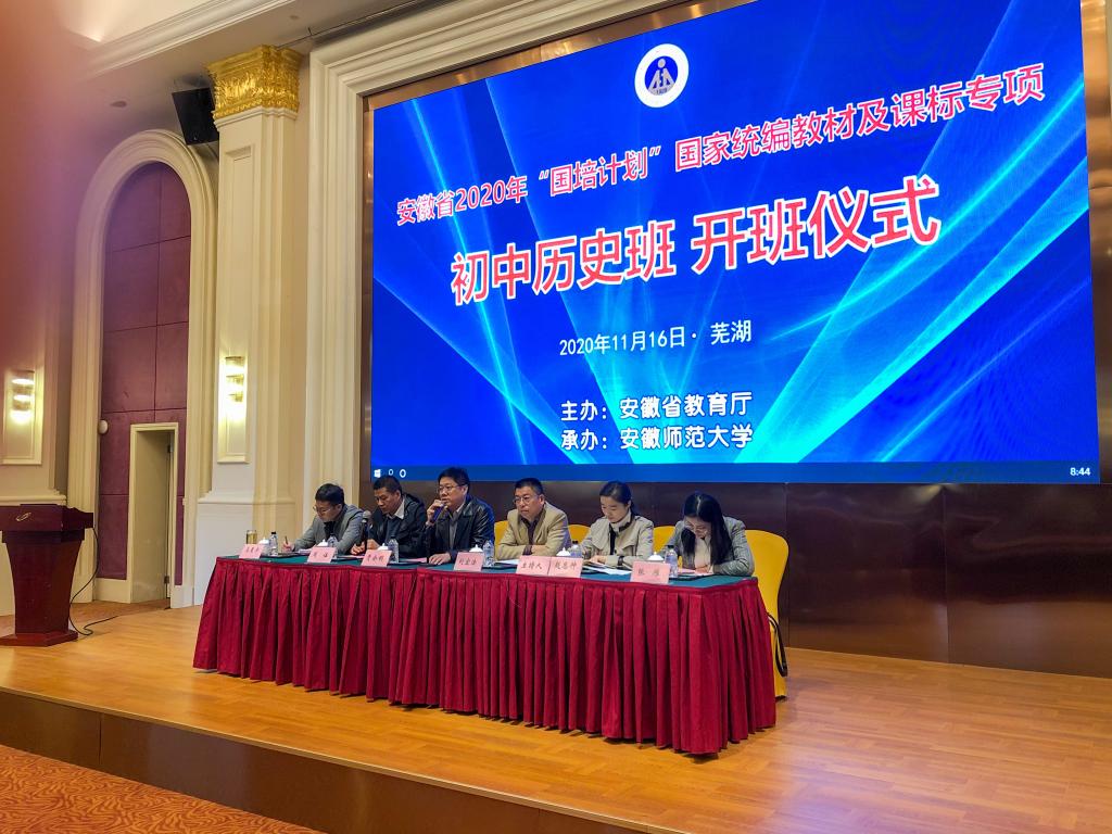 2020年11月16日上午,由安徽省教育厅主办、vwin德赢ac米兰官方网承办的安徽省2020年“国培计划”国家统编教材及课标专项培训初中历史班举行开班仪式。vwin德赢ac米兰官方网继续教育学院副院长贾会明,培训首席专家刘宏法,德赢AC米兰合作伙伴副院长周伍,安徽省青少年网络素养教育基地办公室副主任赵忠仲,培训班班主任和一百余名初中历史教师、教研员参加开班仪式,仪式由赵忠仲主持。