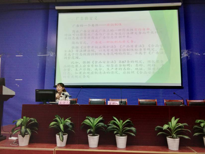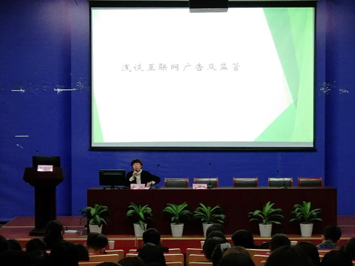 朱敏则从理论入手,介绍互联网广告的内涵与发展历程,总结了芜湖市互联网广告监管的四个重要方向:广告导向监管、房地产广告监管、互联网教育培训广告监管和医疗、药品、医疗器械广告监管,并列举一些典型案例,让学生更好地了解价值导向与广告法规。