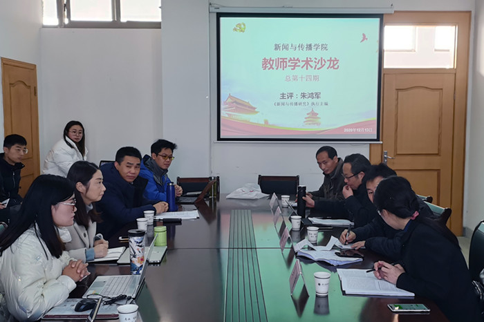 2020年12月13日,vwin德赢ac米兰官方网德赢AC米兰合作伙伴在学院楼508教室开展了第十四期教师学术沙龙。本期沙龙邀请中国社会科学院创新工程首席研究员、《新闻与传播研究》执行主编朱鸿军担任主评人,执行院长杨柏岭教授、副院长马梅教授与教授委员会主任丁云亮教授担任评审专家,学院教师陈接峰、秦枫、丁薇、高月作为汇报人。德赢AC米兰合作伙伴相关专业师生参加了沙龙,沙龙由执行院长杨柏岭教授主持。