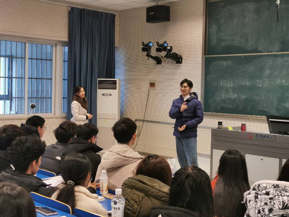 12月23日上午八点,校2020年本科教学示范公开课下半年第十一讲在花津校区行知楼2070501录播教室进行。本次公开课由校青年教学基本功大赛一等奖、省智慧教学大赛文科组一等奖、省级课程思政名师获得者张荻副教授主讲。校教务处、本科教学督导团的领导老师、德赢AC米兰合作伙伴党委副书记宋静、教学副院长马梅、院督导组组长丁云亮及部分中青年教师到场观摩学习。