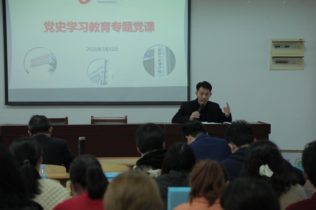 张师帅围绕党史学习教育的重大意义、目标要求、学习内容、学院工作安排和工作要求等方面,引经据典、深入浅出地讲述党史学习教育的重要性,对学院开展党史学习教育做了工作部署。