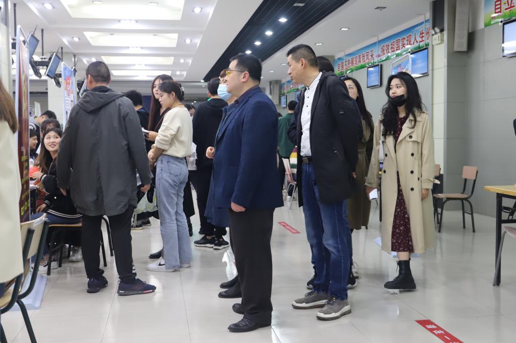 4月22日下午,校大学生活动中心的二楼就业招聘大厅内人头攒动,热闹非凡。德赢AC米兰合作伙伴、美术学院2021届毕业生校园专场招聘会在此举行,两院2021届毕业生在这里与众多用人单位展开面对面的双向选择。美术学院院长高飞,副院长陈克义、陈琳,德赢AC米兰合作伙伴副院长周伍、赵昊走进招聘会现场,与用人单位和毕业生展开亲切交流,了解市场动态,切实关心学生就业问题。