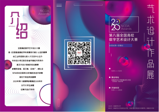 本次巡展汇聚了第八届全国高校数字艺术设计大赛总决赛一等奖的作品,作品类别涵盖了视觉传达、环境设计、数字媒体、动画、服饰与时尚设计、人工智能设计等十余个类别。此次展出的50多幅作品题材多样、内容丰富、主题鲜明,有宣传脱贫攻坚题材的作品、讴歌白衣战士及助力疫情防控的作品、为地方政府设计的文创产品、反映中国传统文化主题的作品、为企事业单位量身打造的设计方案,也有对标联合国可持续发展目标的宣传视频、大学生发挥艺术特长的原创产品等。展览将展至5月15日。
