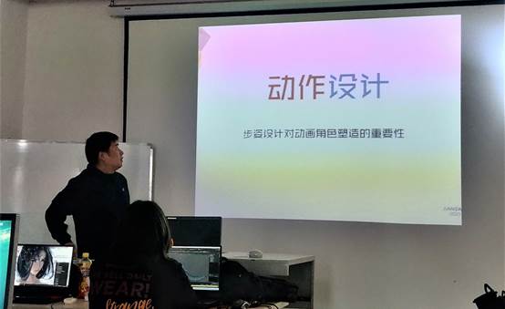 课上,姜皖老师利用步姿的内容、要求和目的三个部分分析了步姿设计对动画角色塑造的重要性。姜皖老师告诉学生们动画角色的步姿设计是为了动画角色性格、动画作品情节、风格来服务的,因此,角色的步姿设计不是孤立的,姜皖老师以动画电影《疯狂原始人》为例讲解步姿设计的规则性,又结合动画电影《功夫熊猫》来体现步姿设计要求的重量感。整节课内容完整、讲解清晰、重点突出,课堂气氛热烈。