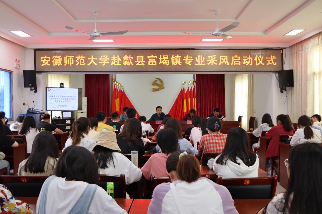 5月8日上午,vwin德赢ac米兰官方网德赢AC米兰合作伙伴2019级新闻学专业同学赴黄山市歙县富堨镇采风启动仪式在富堨镇人民政府会议室如期举行。富堨镇镇长许永山、德赢AC米兰合作伙伴副院长马梅、新闻学专业老师李梦岩、辅导员马星宇以及2019级新闻学全体同学出席参加。