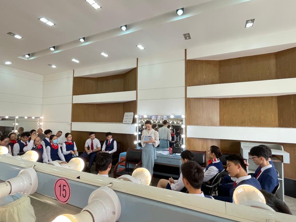 课堂上,张瑞首先对之前各航空公司的服饰妆容以提问形式做了简要回顾,再列举不同的职业形象及要求,指出职业形象塑造的三个基本内容:服饰、发型和妆容。在服饰搭配中强调了基本原则,着重讲解了正装的穿着规范和配饰的佩戴原则;其次介绍了职业与发型设计及职场妆容总体要求。接下来,张瑞给出5种不同的职业身份和五套不同的服装,让同学们按照小组来选择、讨论和设计,并要请3组同学上台讲解小组选择的职业、服饰、职业形象设计及理念。随后学生进入实践操作环节,并将于第二节课进行讲评。