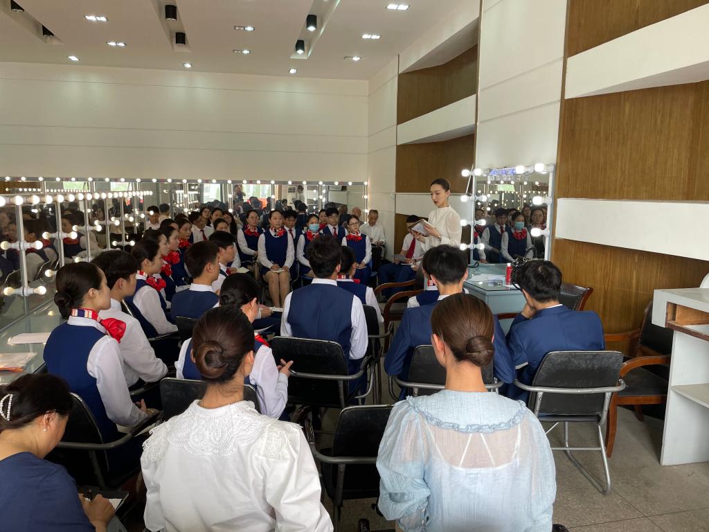课堂上,2020级航空服务艺术与管理班的同学们身着整齐制服以昂扬的精神面貌和渴求知识的认真态度展示出良好的学习风貌。本次观摩课有助于学校、学院进一步了解同学们的学习状态,也给各位老师也提供了一个交流学习的平台,对提高青年教师教学水平起到很大的促进作用。