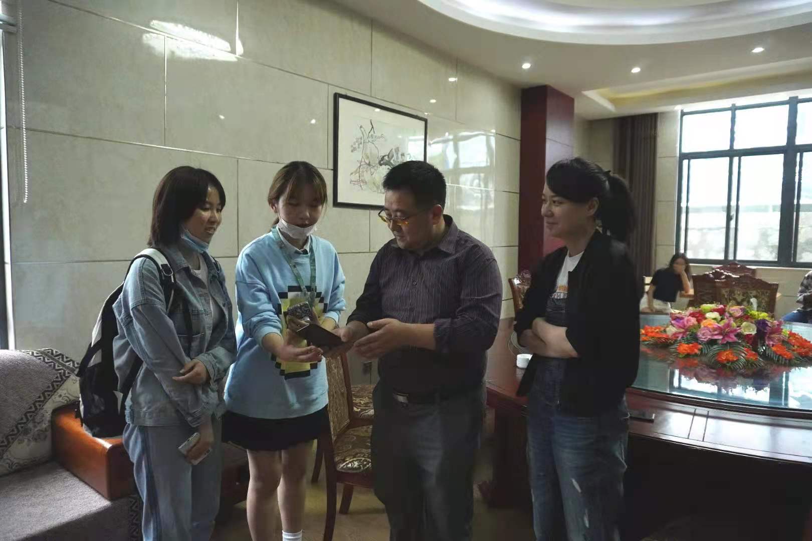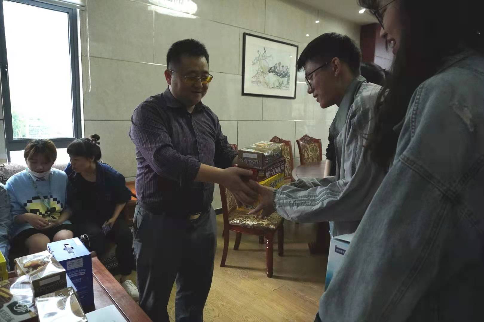 赵昊一行在带队老师林燕、杨帆的带领下还来到了旌歙古道现场指导在这里采风的学生,他就视频拍摄、角度选取、主题确定等一一详细进行了指导,并现场实地考察走访了采风现场。随后他还来到了碧云村与正在那里采访的刘海智进行了交流。在现场走访前,赵昊一行还来到了采风驻地给全班同学发放了慰问物资。