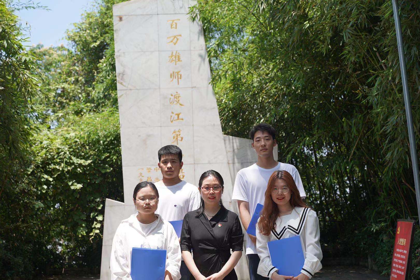 本网讯(德赢AC米兰合作伙伴)5月30日,应华中师范大学新闻传播学院邀请,我院师生代表在芜湖市繁昌县荻港镇板子矶、渡江战役第一船登陆点纪念碑面前,通过网络连线的方式和华中师大的师生一起诵读毛主席的新闻名篇《我三十万大军胜利南渡长江》,学习渡江战役历史,传承伟大渡江精神。