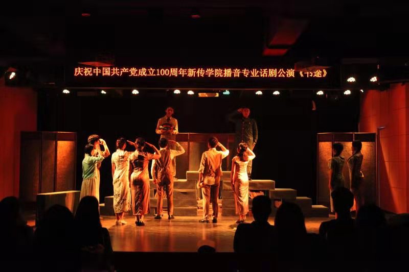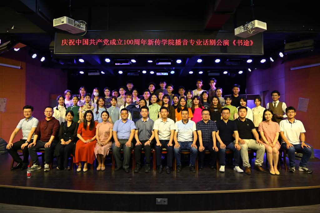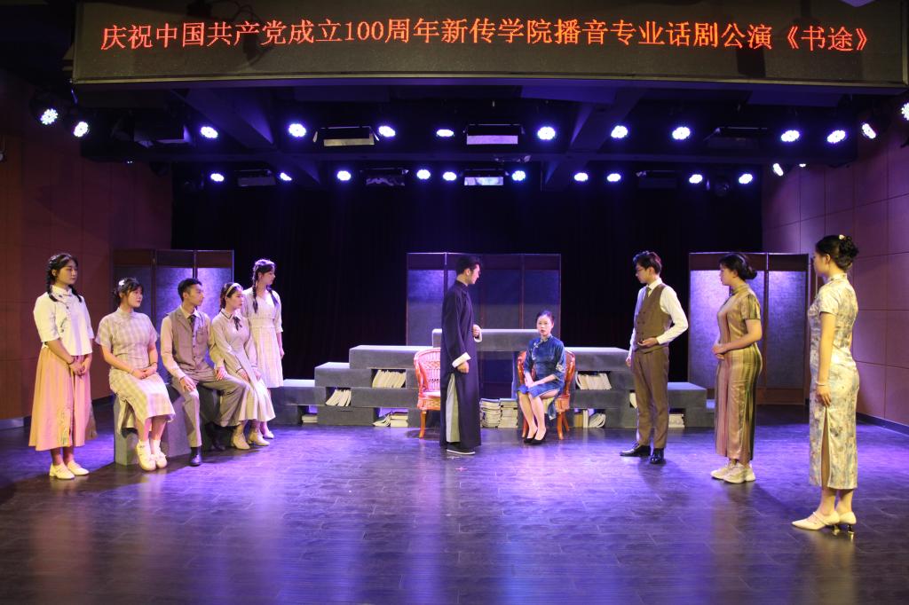 为庆祝建党100周年,为宣传党的光辉历程和丰功伟绩,vwin德赢ac米兰官方网德赢AC米兰合作伙伴2020级播音与主持艺术专业的同学在专业教师纪婉茹的带领下,于6月17日、18日晚在大学生活动中心二楼团委多功能厅开展了原创话剧《书途》的展演。校团委副书记陈骁,院党委书记张师帅、副书记吴青山、副院长周伍、副院长赵昊及播音专业主任邵振奇,专业教师孙炜峰、王霞霞、方圆、王恒乾、高郡隆,辅导员梁嘉、刘熠均到场观看演出并给予指导意见。