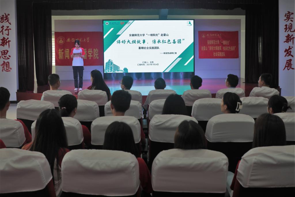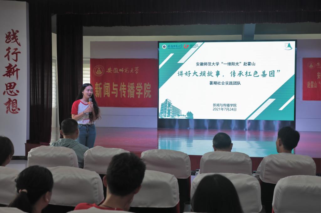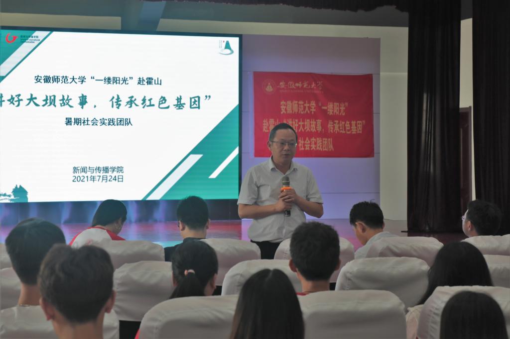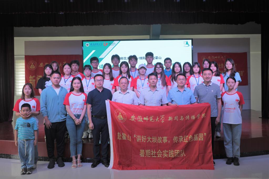 7月24日上午11时,学院党委书记张师帅、执行院长杨柏岭、党委副书记吴青山、新闻专业主任肖叶飞、摄影专业主任李化来一行来到霍山县佛子岭镇新时代文明实践所,对正在进行暑期社会实践的“讲好大坝故事,传承红色基因”团队进行慰问并参加团队阶段性成果汇报会。带队教师梁嘉、刘成俊及团队全体成员参会。