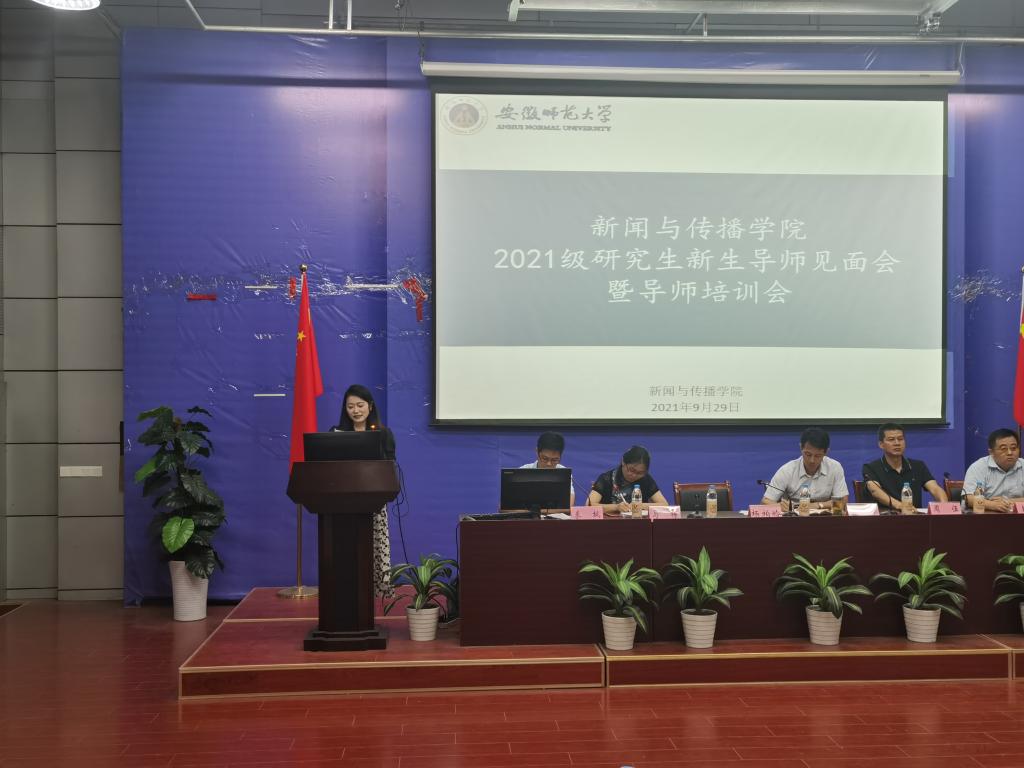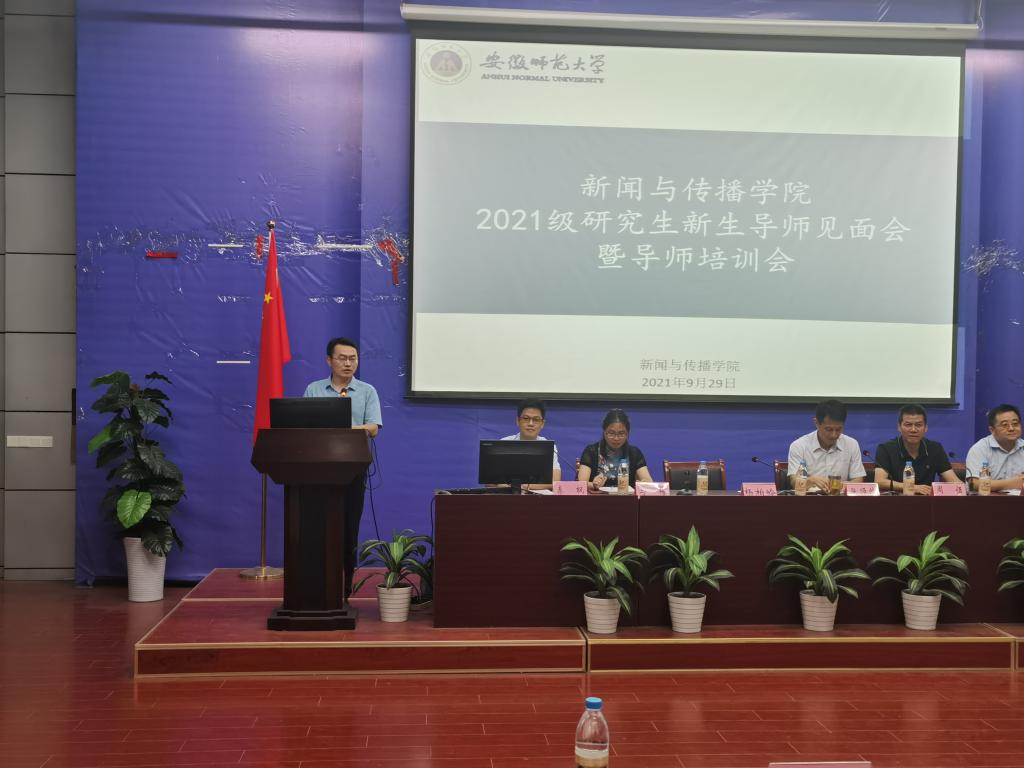 本网讯(德赢AC米兰合作伙伴 曹寅飞 丁纪)2021年9月29日,德赢AC米兰合作伙伴2021级研究生新生导师见面会暨导师培训会在教学楼2010307召开。学院党委书记张师帅、党委副书记、执行院长、戏剧与影视学学位点负责人杨柏岭、副院长周伍、马梅、赵昊、教授委员会主任丁云亮、新闻传播学学位点负责人、图书馆馆长沈正赋、新闻与传播专硕学位点负责人朱晓凯、广播电视专硕学位点负责人陈接峰及各专业研究生导师、研究生辅导员、研究生秘书、2021级全体研究生参会,会议由副院长秦枫主持。