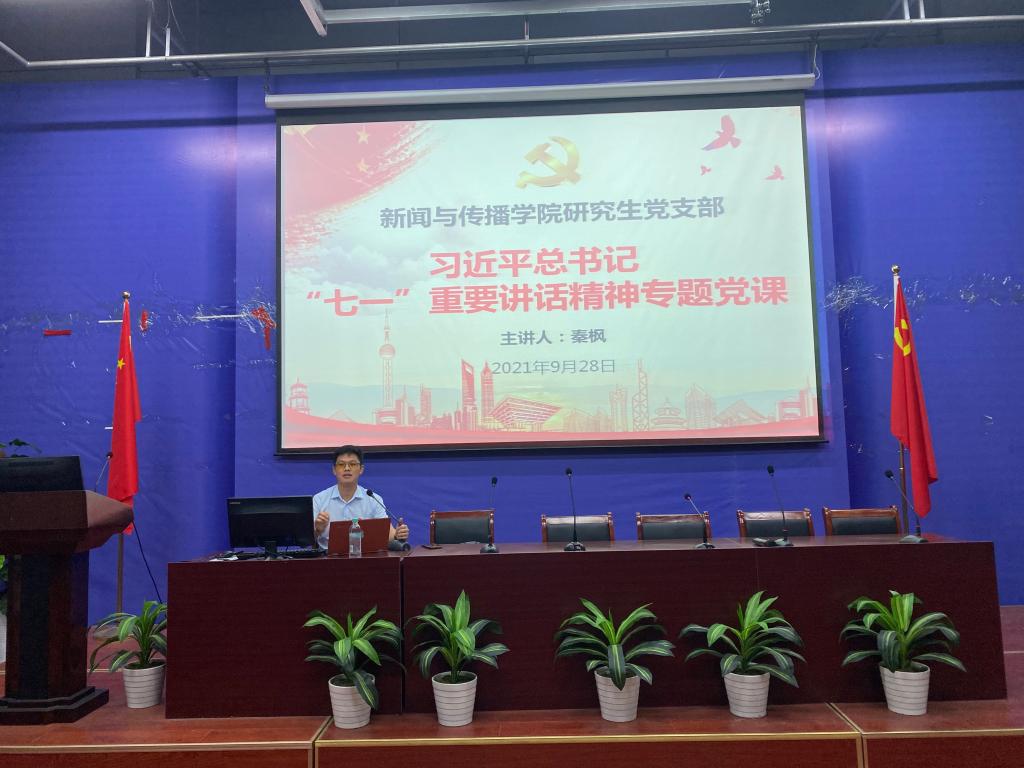 9月28日晚,德赢AC米兰合作伙伴研究生在1号教学楼演播厅开展贯彻《习近平总书记“七一”重要讲话精神》专题党课学习活动。本次党课由副院长秦枫主讲,研究生第一党支部书记葛欣航博士主持。研究生第一、第二党支部的党员、入党积极分子和2021级全体研究生聆听了党课。