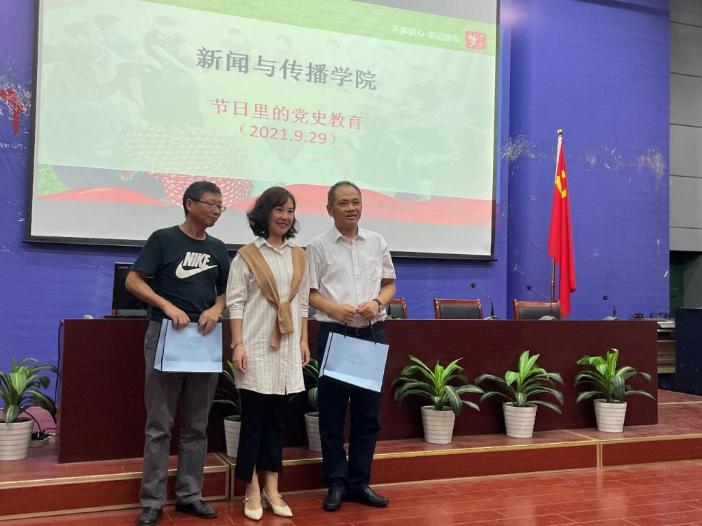 在庆祝祖国母亲生日的同时,张荻书记介绍将由新闻与播音主持党支部为试点,开展党员“政治生日”活动,随后对本月入党的党员周建国、朱晓凯进行慰问,并送上礼物亲切合影。党员朱晓凯发言表示:作为33年党龄的党员,要不忘初心,牢记使命,保持共产党员的先进性和纯洁性。