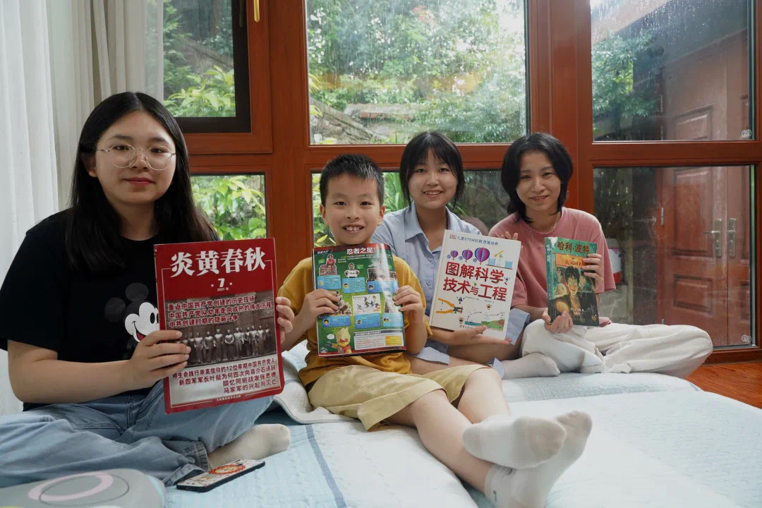 (图为韩钰、熊雯、黄宝仪正在采访十岁的“小彩蛋”)