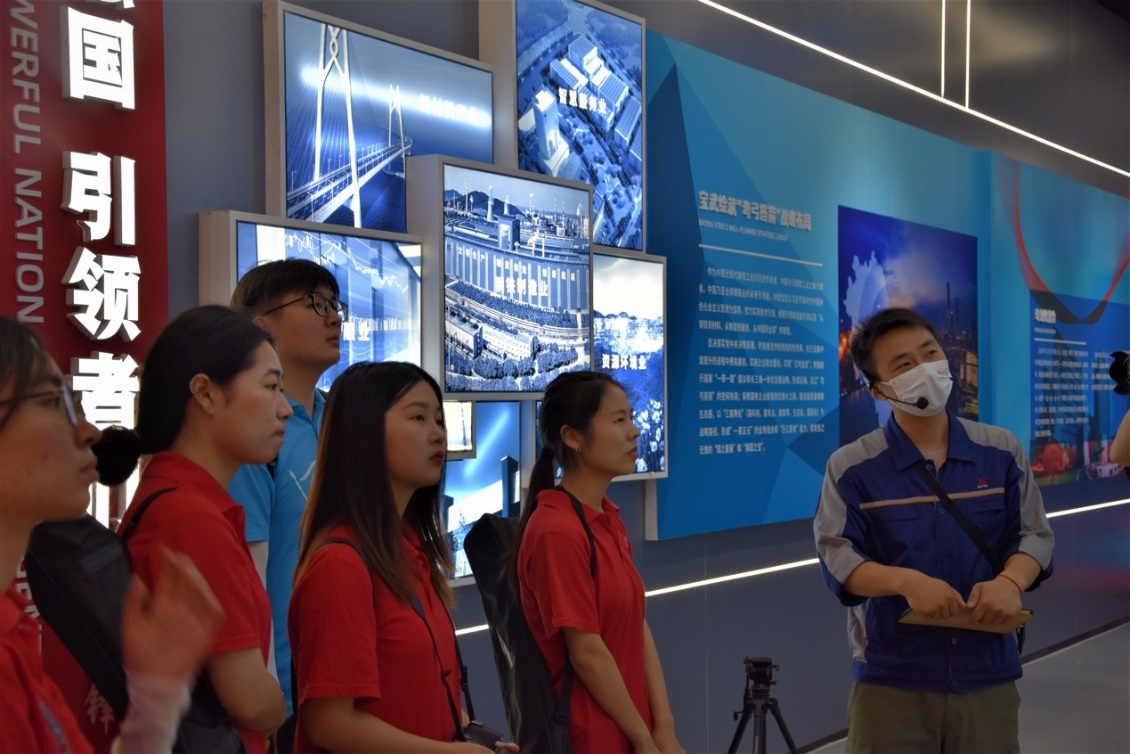 (图为娄潇、汪雯婷、彭云菲正在了解马钢发展历程以及发展过程中的动人故事)