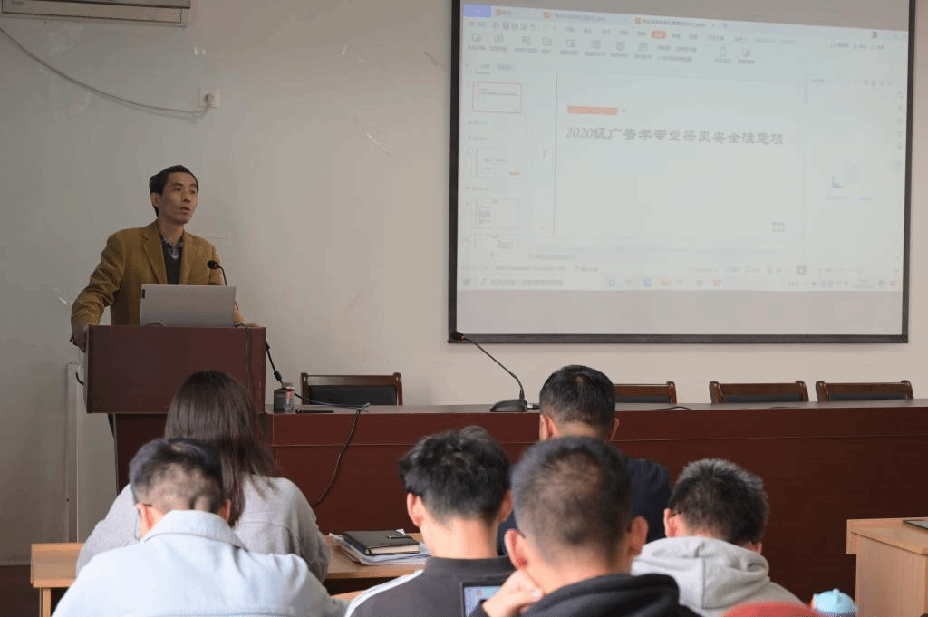 在采风动员会环节,2020级广告学专业安全委员胡璐瑶强同学向大家介绍了采风活动安全注意事项,向同学们普及了相关安全知识,着重强调了疫情防控,提醒大家外出做好防护,不能放松警惕。对于2020级广告专业学子即将举行的采风活动,带队老师芮宏明向大家提出了专业教学的相关要求,并强调了出行安全的重要性。他指出,在采风出发前同学们应明确方向与重点,适时调整。对当地的情况要有一个基本的了解,做到“心中有数、心中有术”。芮宏明老师还表示如果在采风的过程中乃至日后的学习上遇到难题或困惑,都可以向老师们请教,希望同学们可以通过这次采风活动对本专业有更深入的了解,学到真本领,展示德赢AC米兰合作伙伴广告学专业的风采。