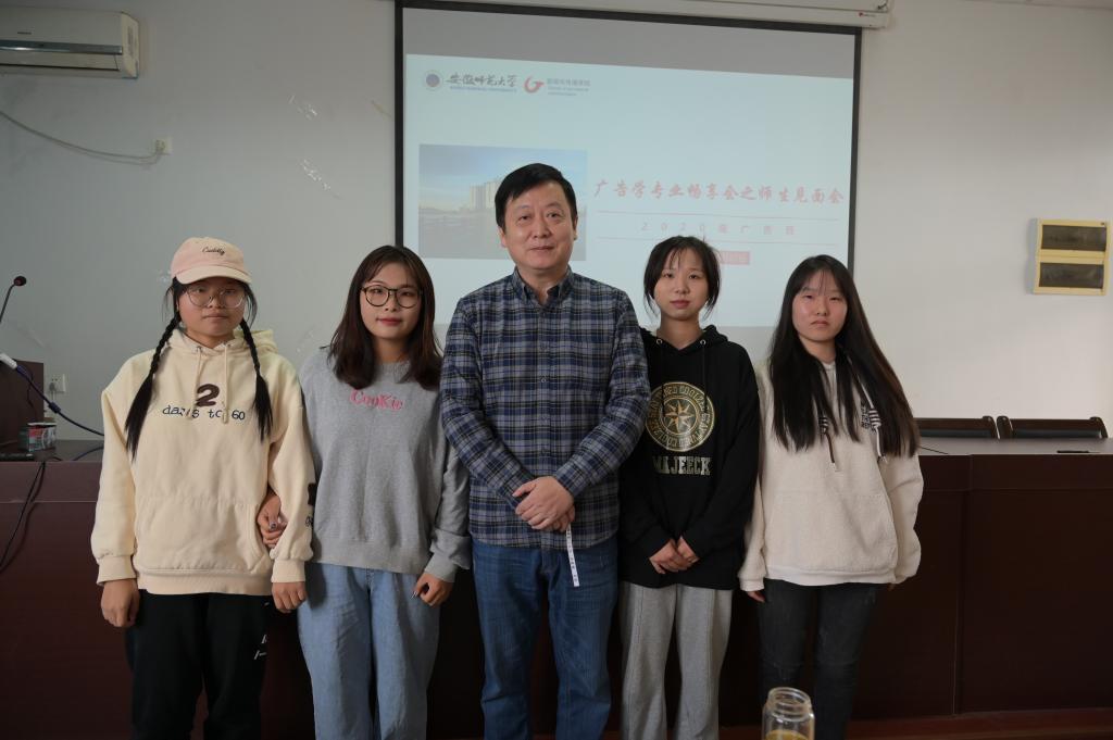 10月27日下午,广告学专业畅想会之2020级师生见面暨赴皖南采风动员活动在学院楼405会议室开展。广告学专业沈幼平、芮宏明、魏岚、罗铭、吴来安、王玉洁、凤鸣等老师参加本次活动,2020级广告专业全体同学参加,活动由班长陶苗苗同学主持。