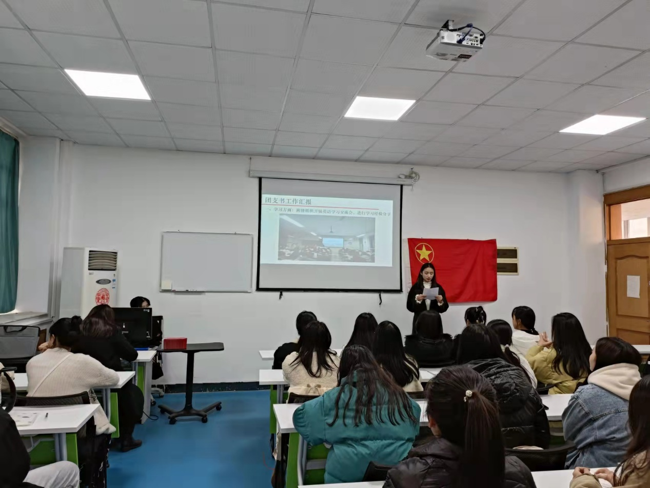 会议在嘹亮的共青团团歌声中拉开帷幕。团支书向大会报告了开学以来团支部的各项工作,并带领与会团员们共同学习了习近平总书记“七一”重要讲话精神和党的十九届六中全会精神。