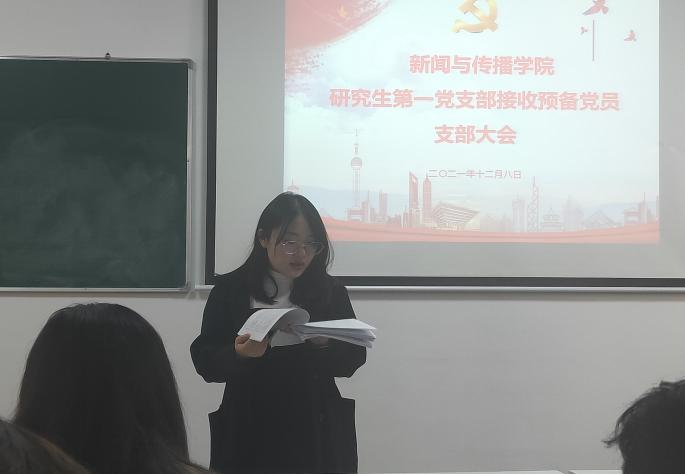接收预备党员支部大会投票结束后,支部书记葛欣航老师带领大家专门进行了理论学习,她要求研究生第一党支部的全体党员要牢记党的初心和使命,进一步认真学习党史,认真学习近期习近平总书记《坚定理想信念补足精神之钙》《坚持用马克思主义及其中国化创新理论武装全党》等文章和重要讲话精神,坚持用创新理论武装自己,做信念坚定、对党忠诚的表率,自觉用习近平新时代中国特色社会主义思想武装头脑、指导实践、推动学习与工作。