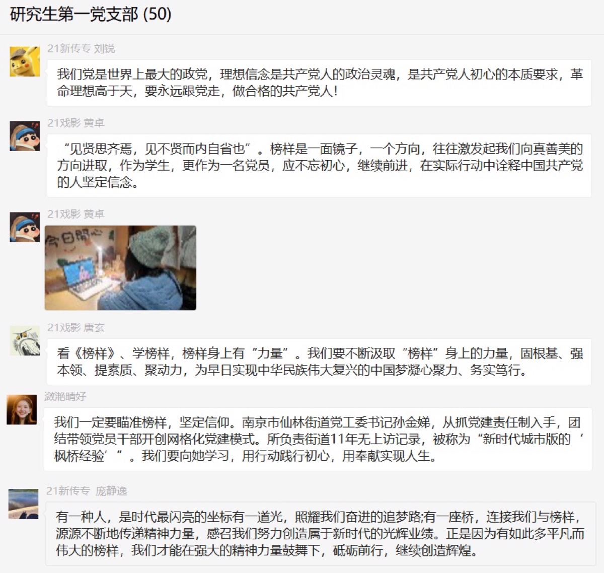 根据省委组织部《关于认真做好<榜样6>(建党100周年特别节目)学习收看工作的通知》,德赢AC米兰合作伙伴研究生第一党支部组织全体党员和入党积极分子线上观看《榜样6》,并展开了热烈讨论。