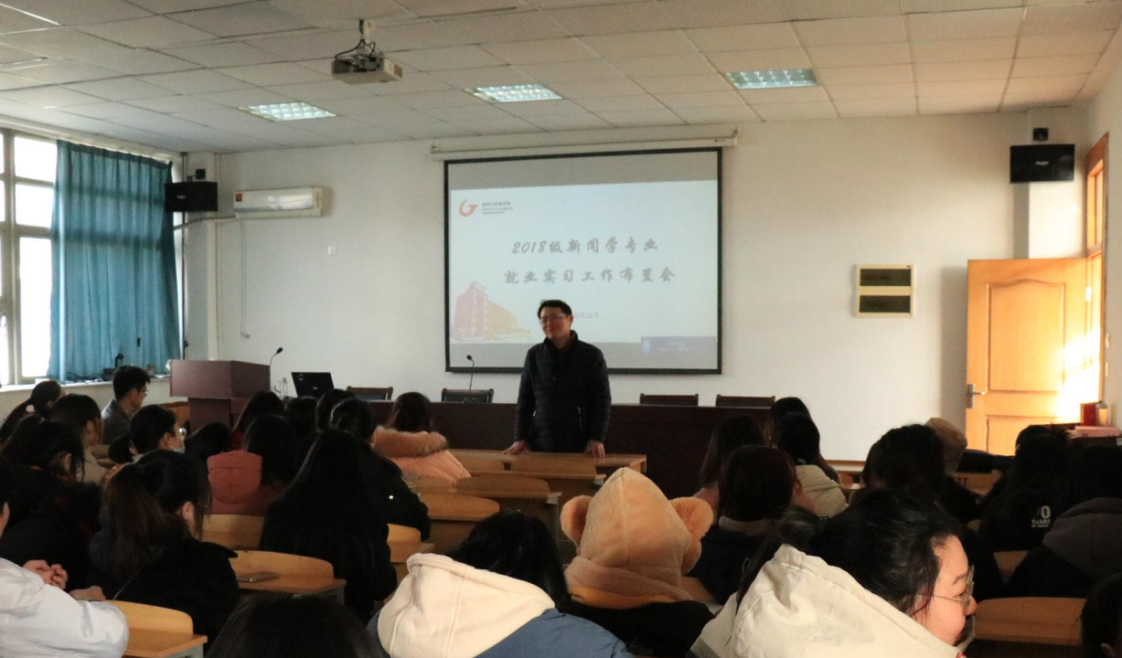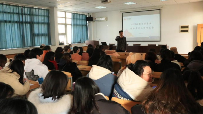 12月27日下午,2018级新闻、广告、摄影、网新各专业在学院四楼会议室开展毕业安全和就业实习工作主题班会。新闻学专业主任肖叶飞,广告学专业主任罗铭,摄影专业专业主任李化来,网络与新媒体专业主任林燕,教师代表高月参加会议,会议由2018级辅导员刘熠主持。