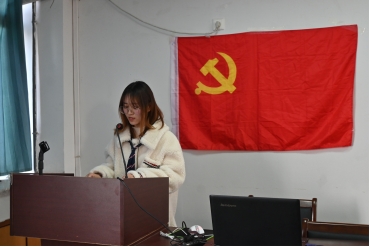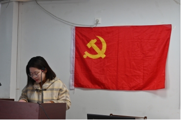 在国际歌激昂的旋律下,与会人员全体起立面向党旗奏唱国际歌。支部书记马星宇介绍了到会情况以及本批发展党员的基本情况,提名审议并通过了许德强为监票人,叶静为计票人。紧接着22名发展对象逐一向大会宣读入党志愿书,就入党动机、对党的认识、个人履历、家属和主要社会关系情况以及需要向党组织说明的问题向大会进行了汇报。