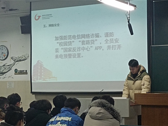 班会开始,刘成俊先为同学们介绍了10位转专业进入班级的新同学,并希望她们能和2班同学一同“加油一起向未来!”接着,刘成俊就四项禁令、课堂秩序、疫情防控、请假销假、网络安全、食品安全、交通安全、课程问题等方面对同学们进行了较为详细的嘱托,尤其是疫情防控问题和学习问题。他希望同学们能够自觉遵守相关规定,不随意离校,做到学习、生活空间的相对稳定。同时,针对期末考试成绩,他以“考得好的,不要翘辫子”“考得弱的,不要失胆子”“转专业的要勇往直前争面子”来鼓励同学们,赢得同学们一致赞同。